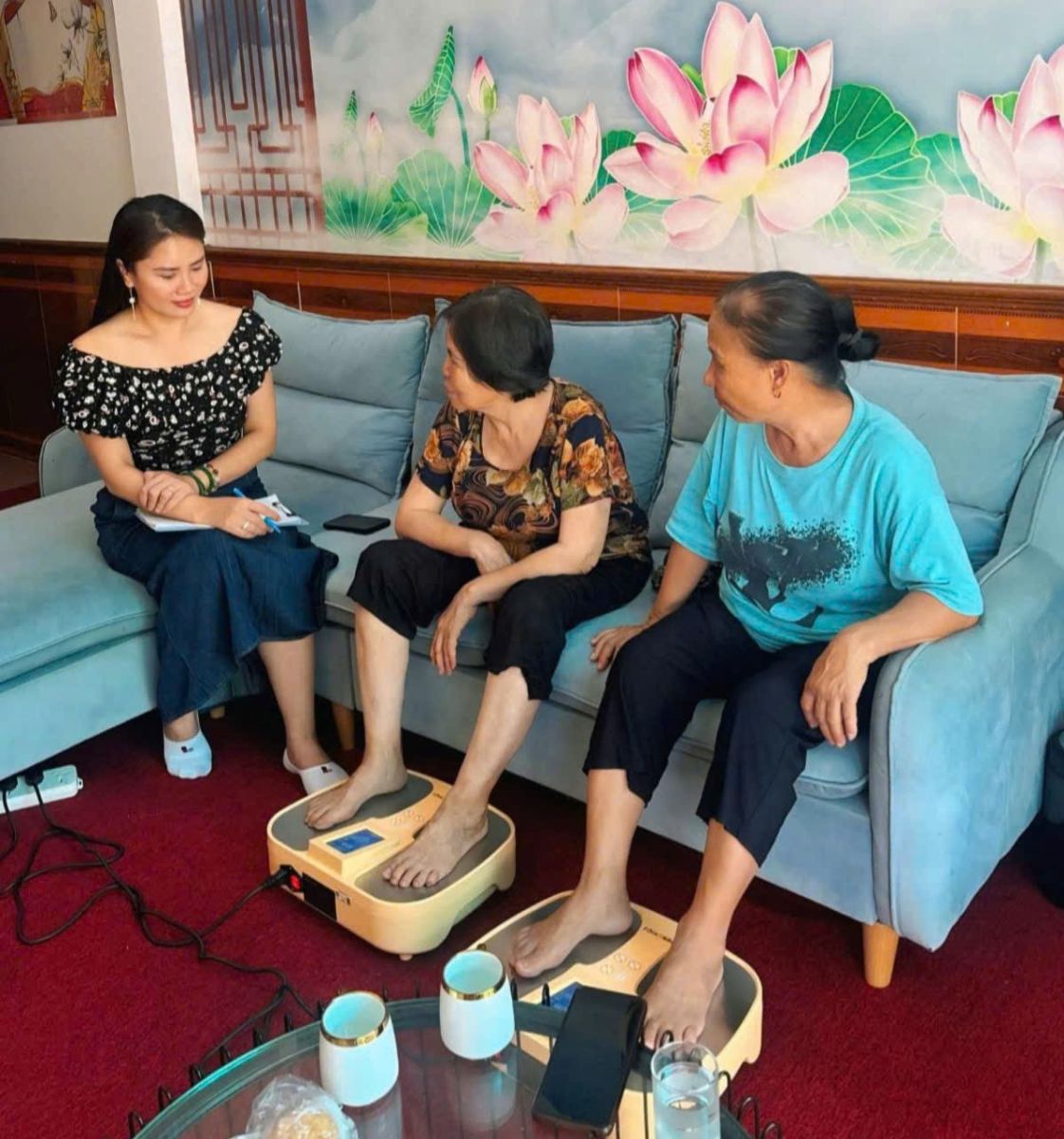 Giám đốc Bùi Thị Huyền lắng nghe những chia sẻ về sự hiệu quả sau khi trải nghiệm sản phẩm.